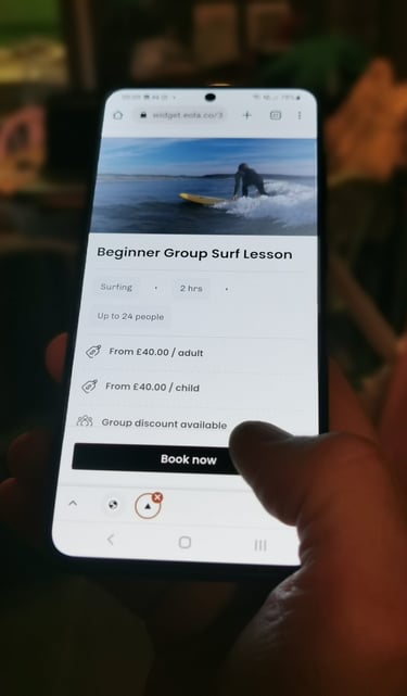 Yn syml, defnyddiwch y botwm 'Archebwch Nawr' o unrhyw sgrin neu pwyswch y botwm isod i archebu offer syrffio.